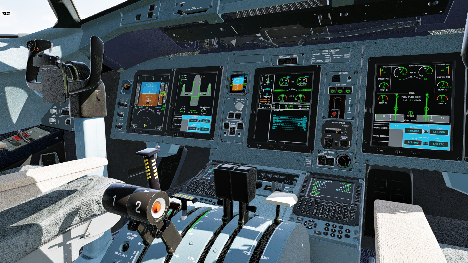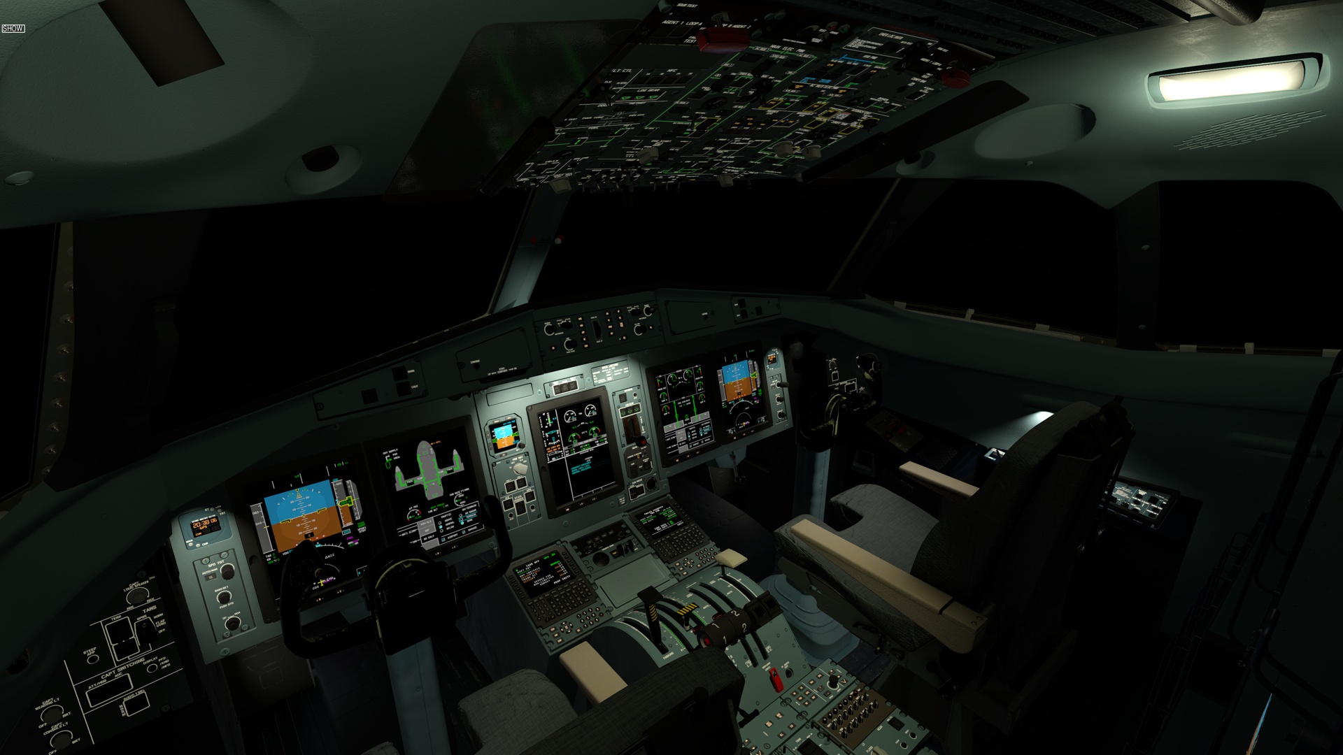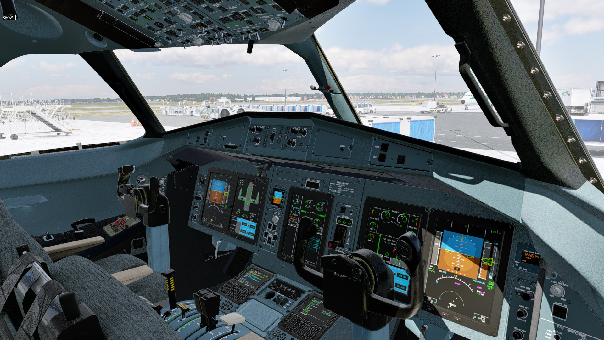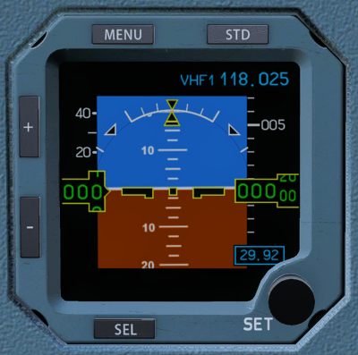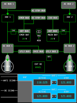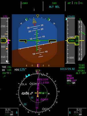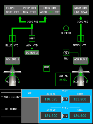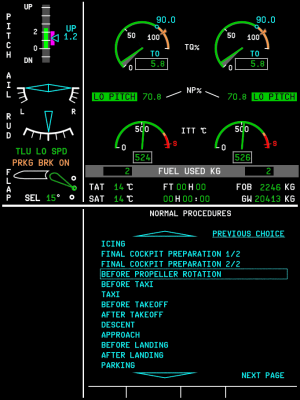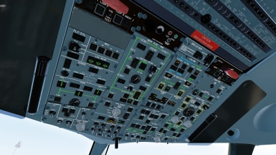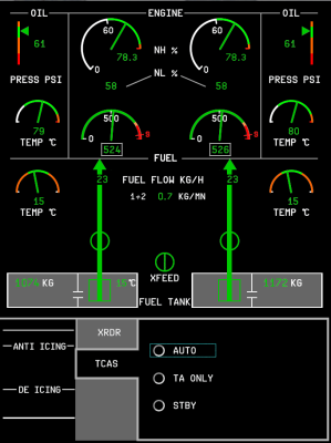 The aircraft displays (PFD, MFD, EWD) are rendered on the panel.png with resolution 682 by 910 pixels. Below are screenshots of how they are drawn on the panel in 100% scale. Work In Progress.