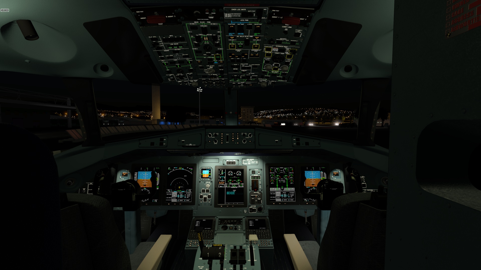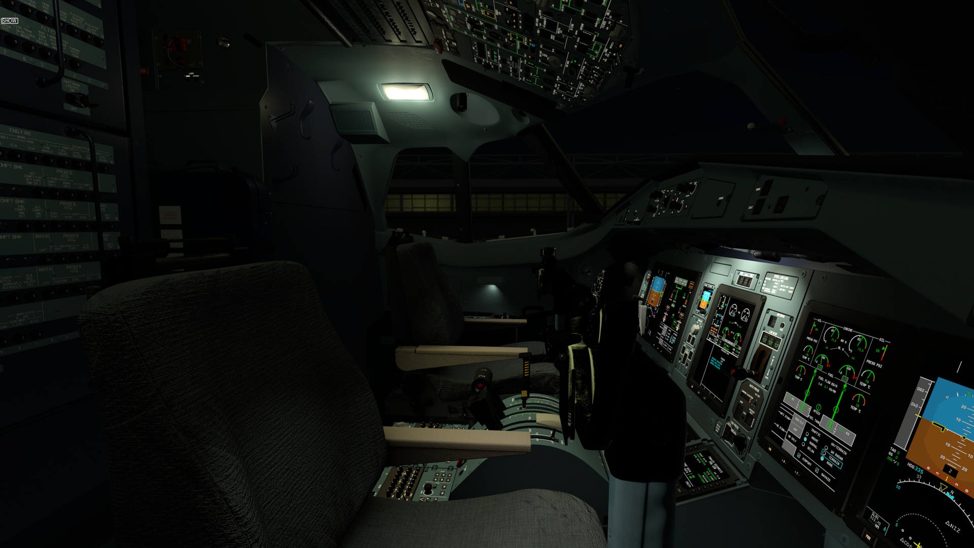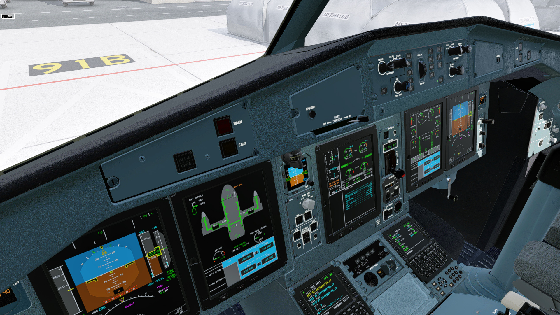 The aircraft displays (PFD, MFD, EWD) are rendered on the panel.png with resolution 682 by 910 pixels. Below are screenshots of how they are drawn on the panel in 100% scale. Work In Progress.
